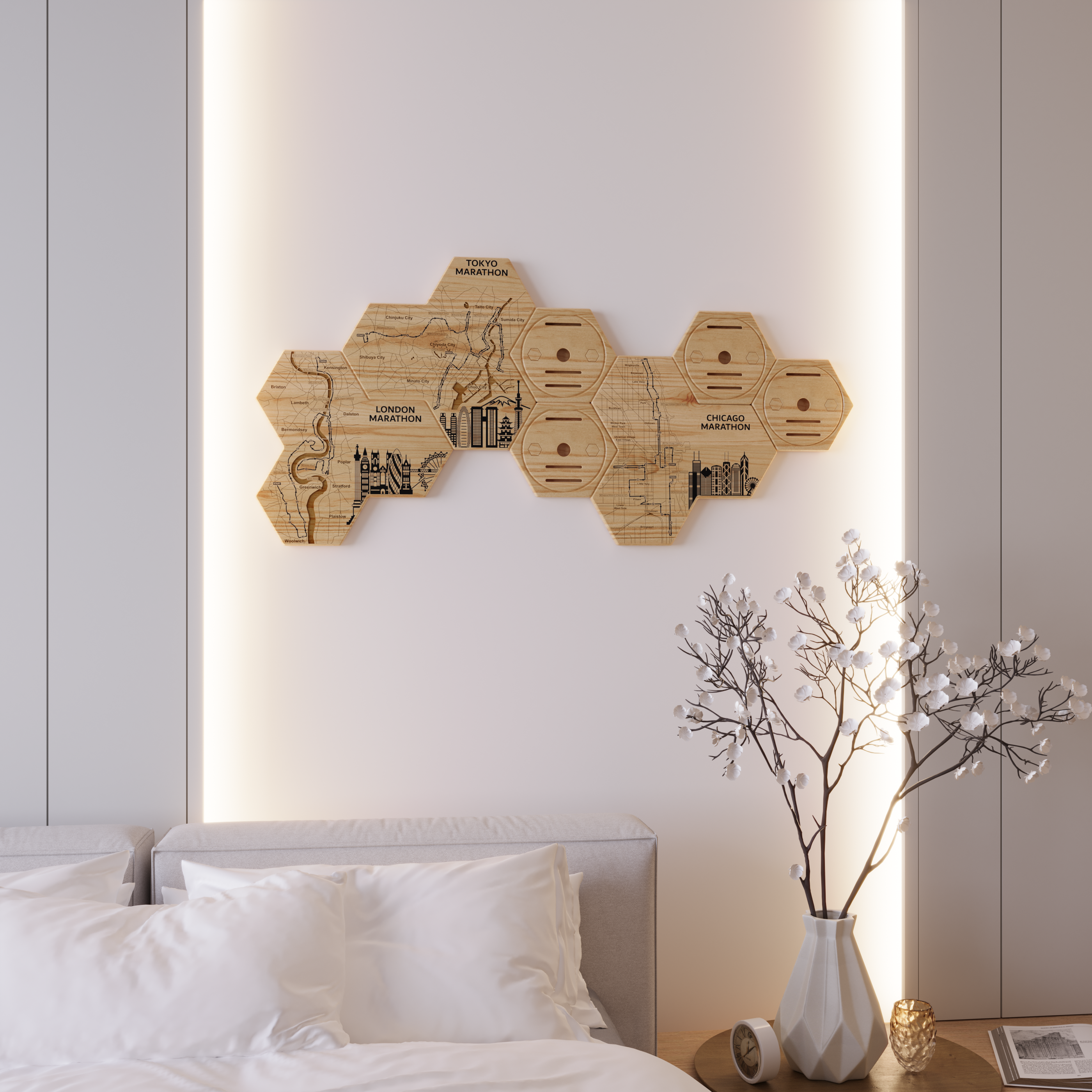 The unique hexagonal shape of the medal holder allows you to create an interlinked display of multiple medals. You can start with a single holder and then connect additional holders as you earn more medals, creating a visually striking honeycomb of victories.