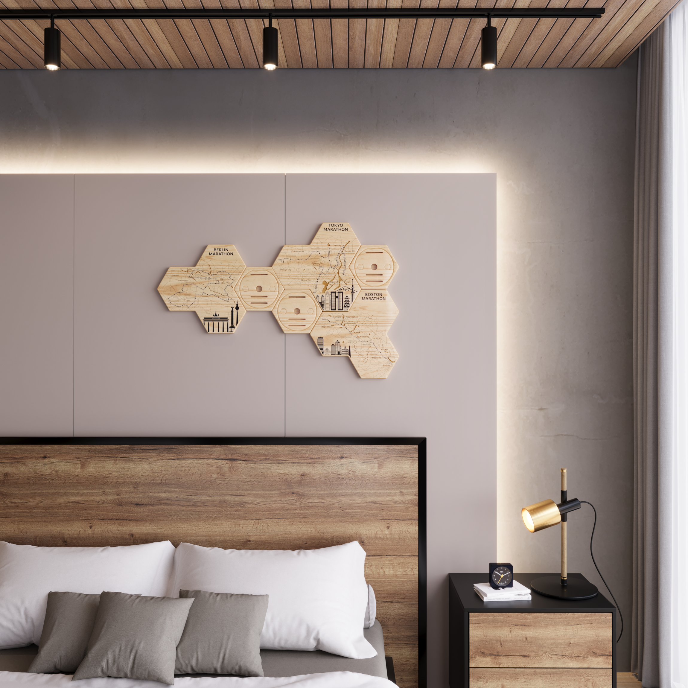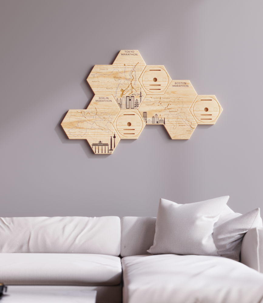 The unique hexagonal shape of the medal holder allows you to create an interlinked display of multiple medals. You can start with a single holder and then connect additional holders as you earn more medals, creating a visually striking honeycomb of victories.